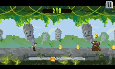 Убегаем от каменной глыбы, при этом собираем монетки и преодолеваем препятствия.