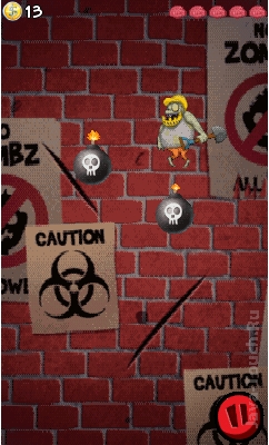 Уничтожайте в ява игре Zombie Blitz атакующих зомби одним касанием по экрану. Самое главное, не коснуться вылетающей бомбы.