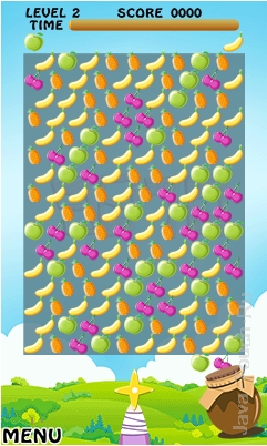 Помогите милому персонажу ява игры Fruit Juice Ninja очистить игровое поле от фруктов и ягод, чтобы увидеть код к следующему уровню.