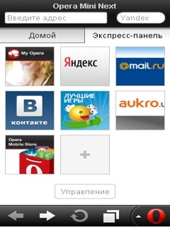 Распространенный мобильный браузер "Opera Mini Next v7.0". Описывать его детально нет особого смысла, так-как та же жопа - только с боку. Производители утверждают, что эта версия еще быстрее и еще удобней. Так же поменяли начальную страницу которая подключена к социальным сетям, то-есть можно отслеживать...